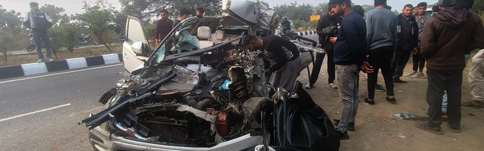 सीहोर में पप्पू के ढाबे के पास इंदौर की कार का भीषण एक्सीडेंट। महू के रहने वाला परिवार था कार में सवार।