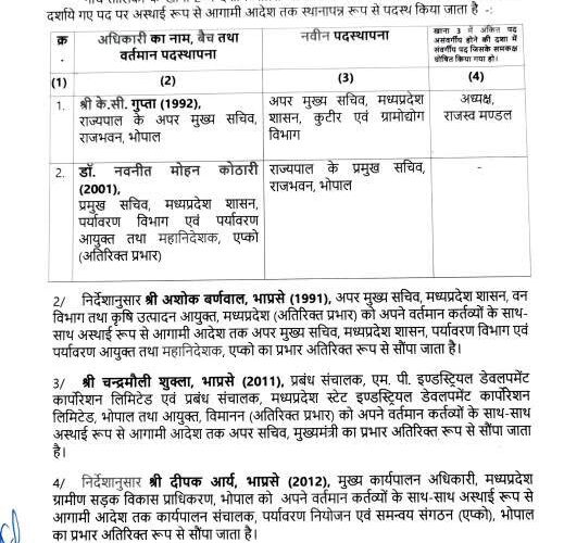 राजधानी भोपाल में सिया (SEIAA – स्टेट एनवायरनमेंट इम्पैक्ट असेसमेंट अथॉरिटी) के चेयरमैन और प्रमुख सचिव एप्को डायरेक्टर व सिया सचिव के बीच हुए हाई वॉल्टेज विवाद के बाद अब प्रमुख सचिव और सिया सचिव पर गाज गिर गई है। दोनों को हटा कर दूसरे विभाग में भेज दिया है।